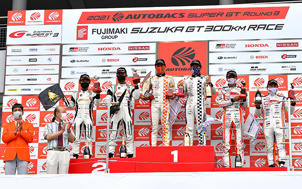 The FUJIMAKI GROUP SUZUKA GT 300km RACE, Round 3 of the 2021 AUTOBACS SUPER GT series took place at Suzuka Circuit (one lap 5,807m × 52 laps) in Mie Prefecture on the afternoon of August 22 (Sun). In the GT500 class, the No. 23 MOTUL AUTECH GT-R (Tsugio Matsuda/Ronnie Quintarelli) displayed fantastic tactics to take a come-from-behind win, its third straight victory at Suzuka. In the GT300 class race, the No. 244 Takanoko-no-yu GR Supra GT (Atsushi Miyake/Yuui Tsutsumi) got their first win, for the team and the drivers.
