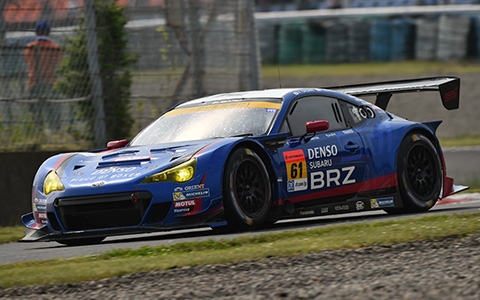 The GT300 class race also saw a good start by the pole-sitting No. 61 SUBARU BRZ R&D SPORT (Kota Sasaki) to lead with the No. 55 ARTA CR-Z GT (Shinichi Takagi), No. 3 B-MAX NDDP GT-R (Lucas Ordonez) and the No. 11 GAINER DIXCEL SLS (Bjorn Wirdheim) in trail. Sasaki in car No. 61gradually proceeded to widen his margin of lead over Takagi in car No. 55, and by the 14th lap, the margin between them was opened to four seconds. But, as Sasaki’s pace began to slow slightly from that point, it was now Takagi who began to shave the margin down. After the 25th lap, the gap between the fleeing SUBARU BRZ R&D SPORT and the pursuing ARTA CR-Z GT was down to just over one second. Meanwhile, Ordonez in car No. 3 and Wirdheim in No. 11 were locked in a tight battle for 3rd position. When Wirdheim got in front on lap 19 and was ready to start chasing the two leaders, the gap had already opened to nearly 20 seconds. In the first half of the race it outcome had already been narrowed down in this way to a contest between the No. 61 SUBARU BRZ R&D SPORT and the No. 55 ARTA CR-Z GT.