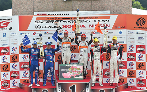 The SUPER GT IN KYUSHU 300 km, Round 3 of the 2014 AUTOBACS SUPER GT, was held at the AUTOPOLIS (Oita Prefecture) on the afternoon of June 1. In the GT500 class, the No. 23 MOTUL AUTECH GT-R driven by Tsugio Matsuda and Ronnie Quintarelli ran a perfect race from pole position to win. In the GT300 class, the winner was the No. 55 ARTA CR-Z GT with drivers Shinichi Takagi and Takashi Kobayashi.