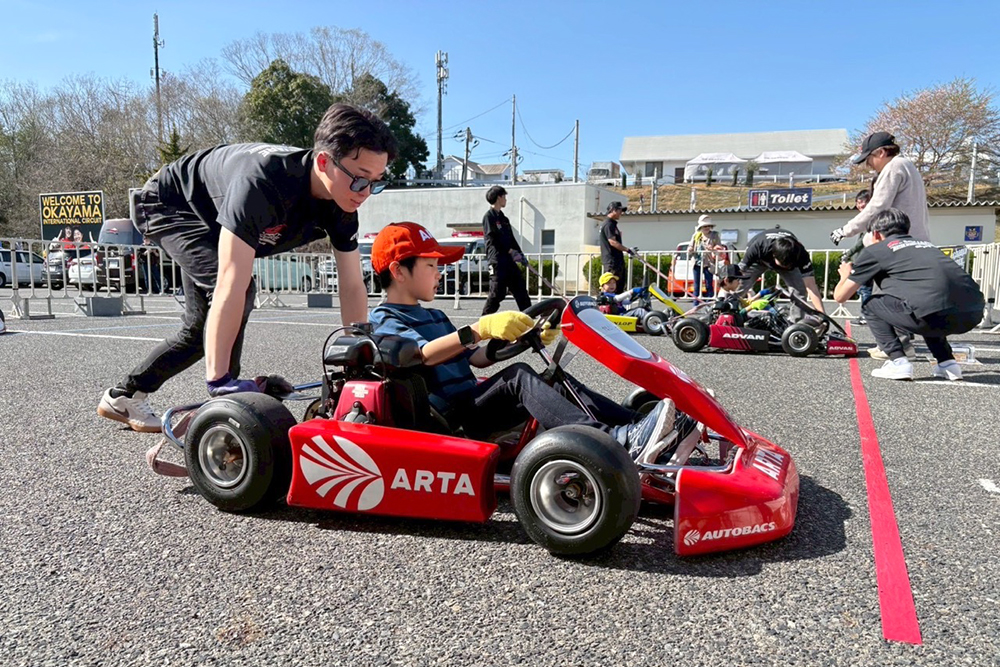 2026年4月11日(土)〜12日(日)に開催された2026 AUTOBACS SUPER GT Round1 OKAYAMA GT 300km RACEにて、「スーパーGTキッズカート体験会」を実施しました。会場は、サーキットの入場ゲートを通ってすぐ目の前の特設エリアです。来場してすぐに目に入る場所ということもあり、たくさんのご家族が足を止めてくれて、2日間を通してとても賑やかな空間になりました。両日ともに晴天に恵まれ、まさに体験日和! 会場には子どもたちの元気な声と笑顔があふれていました。