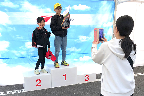 キッズカート体験会エリアに設置された表彰台フォトスポットでは、撮影した写真をその場でSNSに投稿するとプレゼントがもらえます!