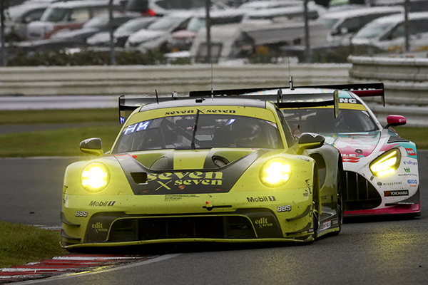 それでもマージンがあった7号車(小林)はトップをキープする。2番手には予選5位から上がっていたNo.666 seven × seven PORSCHE GT3R(ハリー・キング/藤波清斗/近藤翼※)の藤波がつけたが、7号車のペースには及ばない。これで今季2勝目かと思われた7号車だったが、なんと燃料が足りず緊急のピットイン。最低限の給油でコースに戻って2番手は何とか確保した。