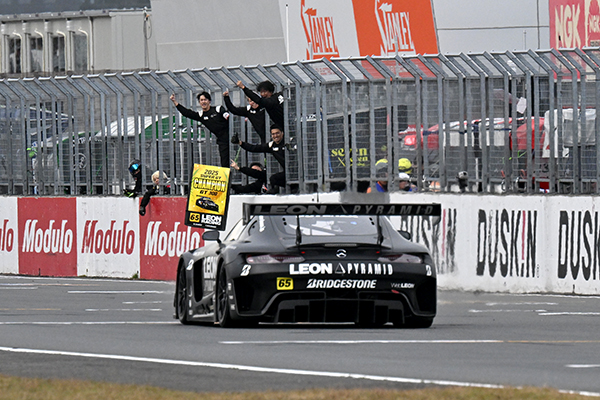 その中で、着実にポイントを重ねていったのが、No.65 LEON PYRAMID AMG(蒲生尚弥/菅波冬悟)とNo.56 リアライズ日産メカニックチャレンジ GT-R(ジョアオ・パオロ・デ・オリベイラ/平手晃平)だ。この2台は最終戦もてぎでも奮闘をみせ、わずかなポイント差で65号車が逃げ切って2度目のGT300チャンピオンに輝いた。