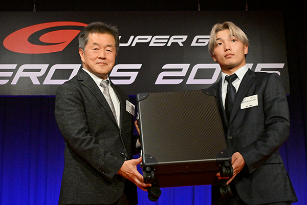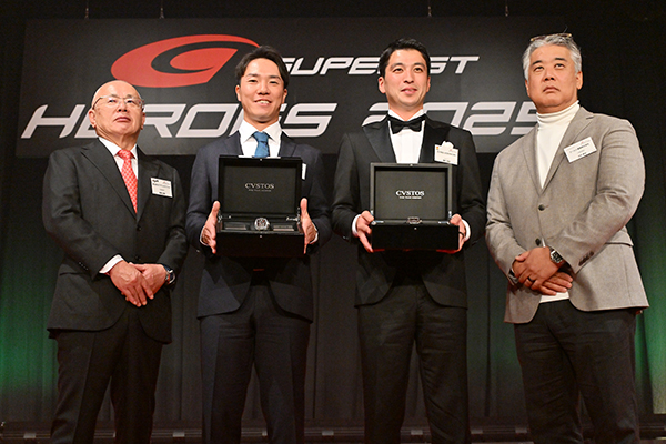 そして、両クラスのチャンピオンドライバーには“CVSTOS賞”として、ワールド通商株式会社の河合寿也代表取締役よりチャンピオンの名前が刻まれたCVSTOSの高級腕時計「チャレンジクロノグラフ2 2025 SUPER GTチャンピオンウォッチ」が贈呈された。