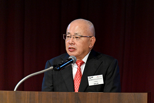SUPER GTの表彰を終えて、今季参戦チーム(エントラント)の代表者が登壇。参戦チームを代表して、GTエントラント協会 の会長も務めるaprの金曽裕人監督があいさつした。