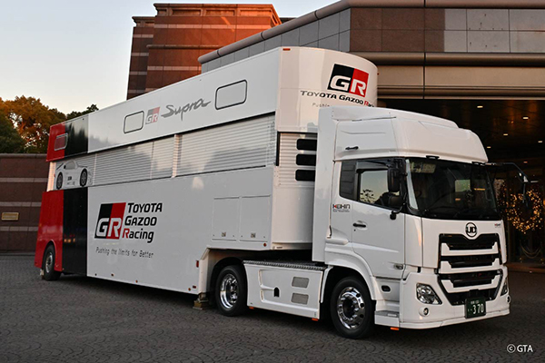 TOYOTA GAZOO Racingのトランスポーター(車両輸送トラック)をメインステージ裏のスカイプラザで特別展示。