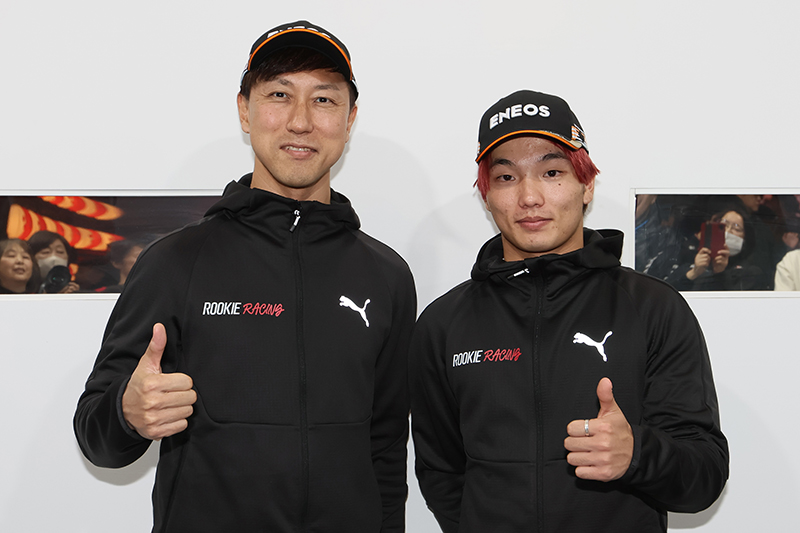1月11日(日)、東京オートサロン2026の小倉クラッチブースで行われたスーパー耐久ST-Qクラス参戦ドライバーによるトークショーの中で、ROOKIE Racingが2026年よりSUPER GTのGT300クラスへ参戦することがサプライズ発表された。会場にはST-Qクラスに参戦するドライバー等が登壇し、多くのファンが詰めかける中での発表となった。 GT300の参戦体制としては、昨年でGT500の活動を終えた石浦宏明と、2025年FIA-F4のシリーズチャンピオンとなった鈴木斗輝哉がコンビを組む。車両はROOKIE Racingがスーパー耐久で2024年まで使用していたメルセデスAMG GT3。メインスポンサーにはGT500と同様にENEOSが付く。 トークショーでは石浦が鈴木を「昔から速さを知っているが、やんちゃな面もあるので教育係も務める」と語り、鈴木との掛け合いも披露されるなど、早くもベテランとルーキーらしい関係性が垣間見えた。 また、石浦が「GR GTの話をしておいてAMGなんですね」と話題を振ると、チームオーナーのMORIZOは「プライベーターチームなので色々ある」と含みを持たせたコメントを返し、将来的な車両変更を示唆するようなやり取りも見られるなど、今後の展開にも期待が高まる。 正式な参戦体制の詳細は後日発表される予定だが、石浦と鈴木の新コンビ、そしてENEOSカラーのAMG GT3という布陣で挑むROOKIE RacingのGT300参戦は、2026年シーズンの注目の一台となりそうだ。