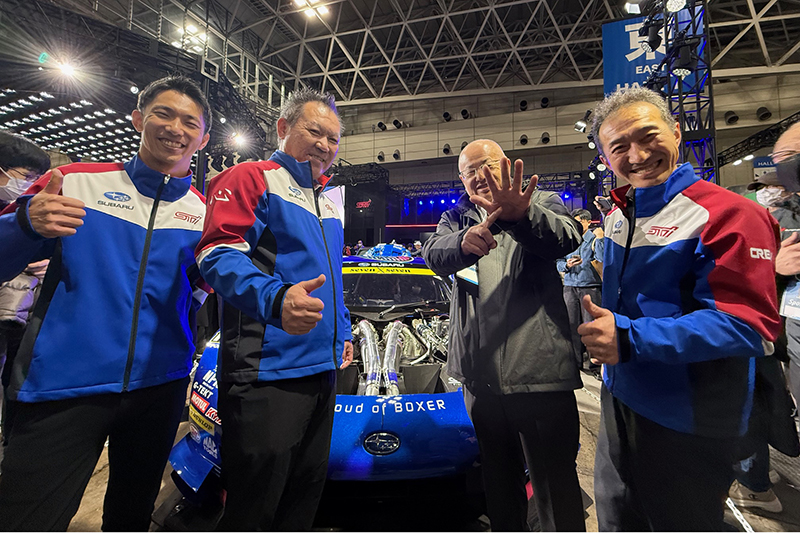 SUBARU/STIブースではお昼過ぎのプレスカンファレンスで、2026年のSUPER GT参戦体制が発表された。小澤正弘総監督と澤田 稔監督、そしてレギュラードライバーの井口卓人・山内英輝は継続となった。加えてリザーブドライバーとして奥本隼士が登録される。