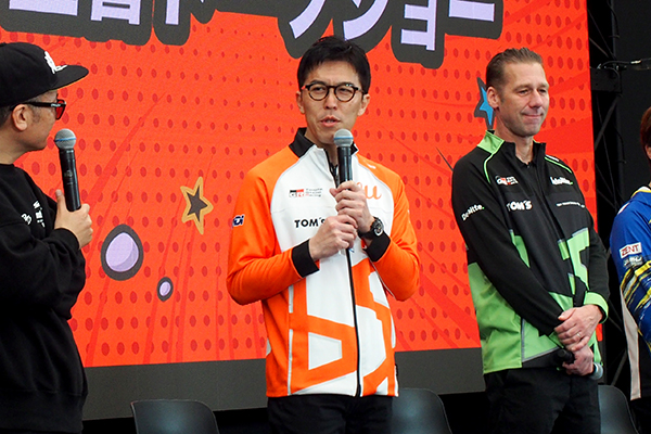 その後、ドライバーを代表して大嶋和也選手が「サーキットではドライバーたちは機嫌が悪いときもあるし(笑)、改めてしっかりとファンサービスしようと立ち上げたイベントです。会う機会が少ないオフの時期に開催できて良かったと思う。好天の下で今日はファンのみんなと、1日楽しみましょう!」と挨拶した。