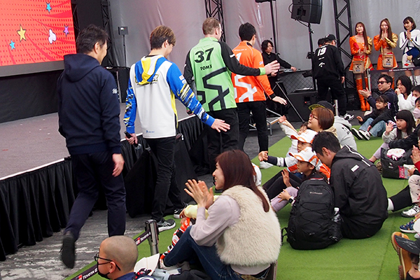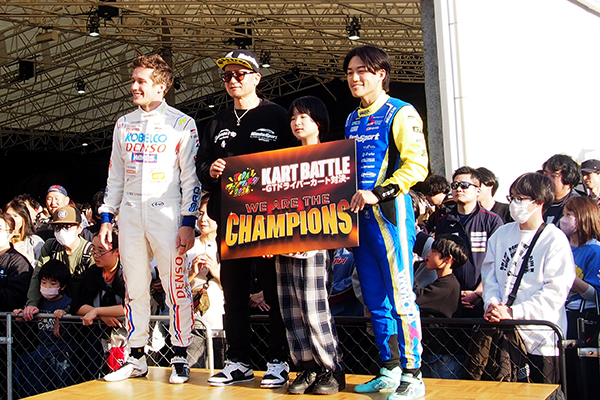 コース上では本番さながらの迫力のあるバトルが繰り広げられたが、結果的に勝負の明暗を分けたのはそのドライバー交代で、三輪車が速いことがこの日発覚したフェネストラズ選手と国本選手のコンビが優勝。国本選手の優勝コメントは「三輪車でのサッシャの速さが勝因」で、フェネストラズ選手も「サポーターキッズもとても速かったし、良いチームだった」と満面の笑みだった。