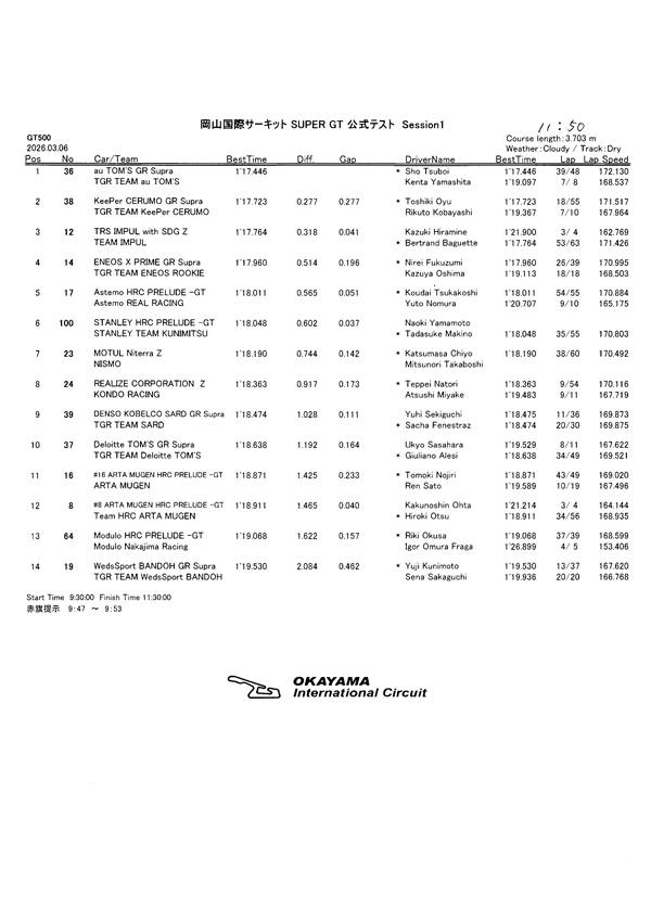 ■公式テスト・岡山国際サーキット 3月6日(金)、7日(土)