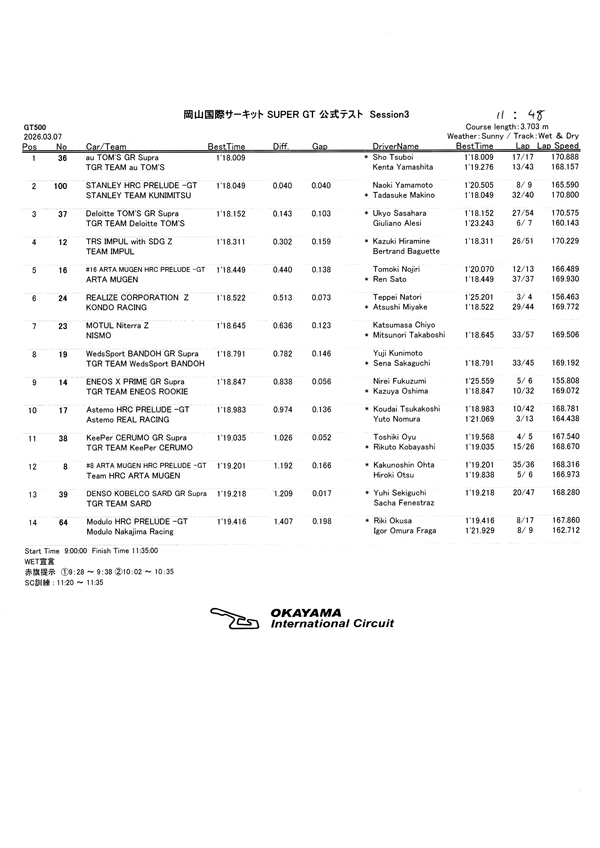 ■公式テスト・岡山国際サーキット 3月6日(金)、7日(土)