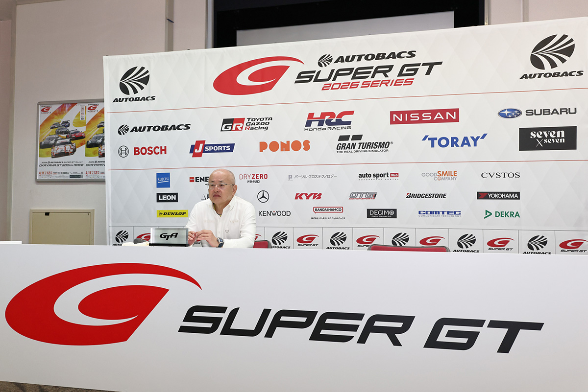 続いてメディアから「2026シーズンの抱負」を問われた坂東代表は、Hondaが今年から投入したHRC PRELUDE-GTをはじめ、3台体制で臨むNISSAN、そしてTOYOTAの各陣営が見せるパフォーマンスに期待を寄せるとともに、「誰が(3連覇王者の)36号車(au TOM’S GR Supra)を止めるのか? また戦略をどういうものにするのか? シビアになってきているのは事実なので、おもしろい戦いが見られると思う」と予想した。また、マルチメイクのラストイヤーとなるタイヤ競争の激化を取り上げ、「(タイヤメーカーが)最後のコンペとなる戦いをやりたがっている。そこに興味をもって見ていきたい」と語った。