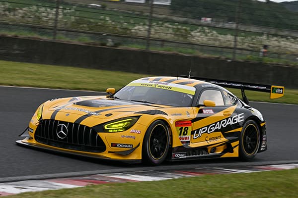 GT300クラスの専有走行に入るすぐに雨がぱらつき、ウェットタイヤが使えるWET宣言が出る。だが、すぐに路面に変化が出るほどではなく、アタックに入るマシンも出る。ここで0号車の元嶋が1分44秒310のクラス最速を記録して、昨年の優勝車が公式練習をトップで締めた。また前戦SUGOのポールシッターであるNo.7 CARGUY FERRARI 296 GT3(ザック・オサリバン/小林利徠斗/澤圭太)が1分44秒658で、No.18 UPGARAGE AMG GT3(小林崇志/野村勇斗)が1分44秒812で続き、トップ3が入れ替わった。2号車はタイム更新なく終わって4番手。5番手には52号車が1分44秒890でつけた。