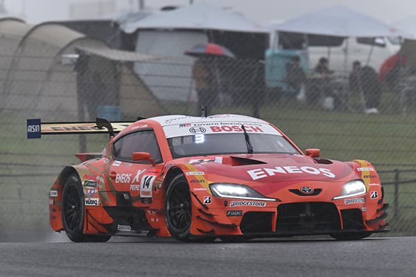 予選3位にはNo.14 ENEOS X PRIME GR Supra(大嶋和也/福住仁嶺)がつけたが、2位の23号車との差は僅か0.008秒だった。またQ1トップにしてHonda CIVIC TYPE R-GT勢で唯一のQ2進出となったNo.64 Modulo CIVIC TYPE R-GT(伊沢拓也/大草りき)は予選8位。ポイントリーダーのNo.1 au TOM’S GR Supra(坪井翔/山下健太)は、Q2残り3分で2セット目のウェットタイヤを投入したが、1セット目で記録した1分42秒158がベストタイムとなって予選7位から3時間の決勝レースに臨むこととなった。
