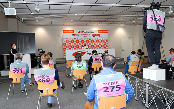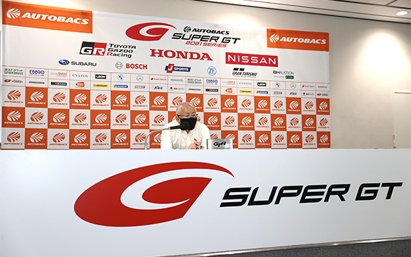 SUPER GTをプロモートしている株式会社GTアソシエイション(GTA)は坂東正明代表による記者会見を各大会において開催している。今大会は2年ぶりのゴールデンウィーク開催の富士ラウンドとなったが、その決勝レースを前に日本モータースポーツ記者会(JMS)の代表質問や取材記者の質問に坂東代表が回答した。