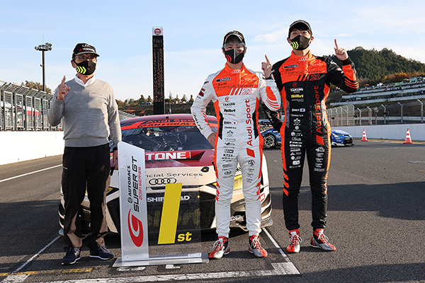 まずは今回優勝できて、本当に本当に嬉しいです。去年の優勝(第6戦鈴鹿)からポイントから遠ざかっていたので。スタートを担当しましたが、昨日の予選が終わった状態のタイヤを見たら、決勝には自信が持てるくらいの表面をしていたのでロングスティントには自信がありました。55号車が速く前の方に抜けていったんですけど、後半は僕らが一番速いのかなというペースで走れていたので、前を走る88号車をターゲットに、88号車が(ピットに)入ったらプッシュしてから(自分たちもピットに)入ろうという段取りで(リアタイヤの)2本交換で篠原(拓朗)選手にバトンを渡しました。その最終周のプッシュも決まって、ピットワークも決まって、篠原選手が最終スティントでいい走りをしてくれたのがすべてにおいていい流れを作れた感じでした。
