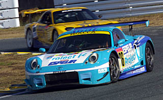 雨の走行ではMobil 1 NSXが1番時計に GT300はプロジェクトμエスペリアMR-Sが連勝目指す快走を披露 ![]() AUTOBACS CUP 全日本GT選手権最終戦CP MINE GT RACEの前日練習走行が11月9日にセントラルパークMINEサーキットで行われた。この日は午前と午後にそれぞれ1時間30分ずつの走行セッションが行われた。 ◆SESSION 1(曇り、気温14度/路面温度15度、ドライ) やや雲が多いものの時折日ざしの差す中で、予定通り午前9時から走行がスタート。気温はこの時点で14度(終了時には18度まで上昇した)。 昨日も合同テストがあったためか、各車決勝を想定したセットアップを目指して、昨日ほどのアタックは見られない。その中で、好走を見せたのはNo.21 イエローコーンマクラーレンGTR(服部尚貴/中谷明彦組)で、このセッション3番手となる1分23秒820を記録。イエローコーンは前戦鈴鹿でクラッシュし、その修復のため昨日午前の走行に間に合わなかった。それだけに今日のこのセッションからが本格的なセットアップと言うところだ。 このセッション終盤、No.1 ロックタイト無限NSX(道上龍/光貞秀俊組)が1分23秒475を出すが、最後にNo.38 auセルモスープラ(竹内浩典/立川祐路組)が1分23秒471のベストタイムを叩き出し、このセッションのトップとなった。このセッションはランキング1、2位がトップ2となり、その差はわずかに0.004秒とほとんど互角。明日の予選でのつばぜり合いが期待できそうだ。 一方、ロックタイト無限NSXと同ポイントで並ぶNo.8 ARTA NSX(土屋圭市/金石勝智組)は9番手、ランキング4位のNo.22 ザナヴィヒロトGT-R(クルム/田中哲也組)は8番手に留まった。 GT300クラスは、前戦優勝したNo.86 プロジェクトμ・エスペリアMR-S(長島正興/松田晃司組)が1分29秒523とレコードタイムを上回るタイムで、このセッションの1位となった。これにNo.62 R&DスポーツダンロップGT3R(柴原眞介/密山祥吾組)が続き、3番手にはランキング6位から奇跡の逆転チャンピオンを狙うNo.31 ARTA・アペックスMR-S(新田守男/高木真一組)が入る。ランキング1位のNo.81 ダイシンADVANシルビア(大八木信行/青木孝行組)は5番手、同2位のNo.7 雨宮マツモトキヨシアスパラRX7(山野哲也/松本晴彦組)は6番手と、GT500同様に厳しい争いをしている。 No.3 ユニシアジェックスシルビア(井出有治/柳田真孝組)は、セッション終盤に他車が撒いたオイルに乗ってしまい、コースアウト。16番手と大きく出遅れてしまった。 ![]() ◆SESSION 2(雨、気温16度/路面温度16度、ウェット) 午後にはいると急に空が暗くなり、13時を過ぎると雨が降り始めた。小雨ではあるが、GTの走行開始の14時ちょうどには、路面は完全なウェットとなる。 このためかコースアウトするマシンも多く、1時間半の走行時間で4回もの走行中断があった。路面がかなり濡れていた序盤は、No.30 綜警McLarenGTR(岡田秀樹/クート組)、No.1 ロックタイト無限NSX、No.36 カストロール・トムス・スープラ(黒澤琢弥/土屋武士組)らが、1分37秒台で上位を占める。 セッション中盤になると雨が小康状態となり、路面もかなり水が掃けてくる。そこでNo.1 ロックタイト無限NSXが1分34秒754でトップに。これにNo.30 綜警McLarenGTR、No.21 イエローコーンマクラーレンGTRも34秒台に入れて続く。No.30 綜警McLarenGTRはさらに34秒250まで上げてリーダーとなる。これにNo.18 TAKATA童夢NSX(フィリップ/トレルイエ組)が34秒269で2番手に。 このままセッションが終わるかに思えたが、終盤にNo.64 Mobil 1 NSX(シュワガー/松田次生組)が1分33秒779と唯一33秒台に乗せて、トップになる。残り6分で、コースアウトしたマシンが出てまた中断となり、結局このままセッションが終了。このウェットコンディションでは、Mobil 1 NSXがトップ。これに綜警McLarenGTR、TAKATA童夢NSX、イエローコーンマクラーレンGTR、ARTA NSXとNSXとマクラーレンが交互に並んだ。 GT300クラスは、No.24 JCMタイサンGT3R(松田秀士/西澤和之組)がセッション中盤に1分41秒708を出して、トップとなった。2、3番手には午前と同様にNo.62 R&DスポーツダンロップGT3R、No.31 ARTA・アペックスMR-Sが並んだ。午前コースアウトしたNo.3 ユニシアジェックスシルビアは、修復に時間が掛かりセッション終盤にようやく登場したが、なんとわずか3周を回ったところでコースアウト。どうも歯車が噛み合わないようだった。 GT500トップタイム No.38 auセルモスープラ 立川祐路「(ウェイトハンディの重さは)もう軽い状態を忘れてますからね(笑)。頼むから軽い状態で乗せてよっていう感じ(笑い)。まあ、(ハンデ80kgという)いまの状況のなかではそこそこクルマは仕上がっていると思います。ただ、昨日今日とセッションごとにコンディションがけっこう変わってしまっているので、そのあたりでまだ煮詰めきれていない部分はあります。予選は、自信がないわけではないんですが、(ウェイトハンディが)軽いクルマもいますからね。ウェットではNSXが速いですね。いつもそうですけど。だから明日はぜったいドライでやりたいです。もちろん日曜日もね」 GT300トップタイム No.86 プロジェ