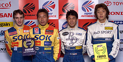 ![]() ■公式予選 1回目レビュー ザナヴィ4番、ロックタイト9番グリッド、auセルモ、ARTAは… GT300はR&DスポーツダンロップGT3Rが初ポール ダイシンADVANシルビアはチャンプに向け最前列スタート ![]() JGTC最終戦CP MINE GT RACEの予選2回目は、予定通り14時50分から60分間で行われた。この走行時間は、1回目とは逆に両クラス混走、GT300占有、GT500占有の3つセッションの順番で行われた。 走行開始時点では気温も19度、日ざしが強く差したため路面温度も25度まで上昇した。 混走セッションでは、まずNo.18 TAKATA童夢NSXがわずか2周で1分24秒789を出し、条件の良さをうかがわせた。そしてTAKATA童夢NSXは24秒104までタイムを上げ、これにNo.100 RAYBRIG NSX、No.6 エッソウルトラフロースープラ、No.39 デンソーサードスープラGT、No.64 Mobil 1 NSXが24秒台で続く。 GT300の占有セッションを挟んで、GT500占有になると、混走時に走らなかったNo.36 カストロール・トムス・スープラが早々に1分23秒556を出してトップに立つが、その直後にスピンを喫してしまう。これに代わってトップに飛び出したのはNo.39 デンソーサードスープラ。早くも22秒台に入れる1分22秒935。さらに次のラップでは22秒806とする。 開始10分時点で、各車一端ピットインしてとっておきのニュータイヤを装着。サーキットは一瞬、まさに決戦前の静けさに包まれる。そして残り7分を切ったところで、一斉にコースイン。ラスト5分の真剣勝負が始まった。 ここでまずトップに躍り出たのは、昨年のMINE勝者であるNo.12 カルソニックスカイライン。タイムは1分22秒435。だがこれもつかの間、No.18 TAKATA童夢NSXが22秒333を叩き出してトップを奪う。続いてランキング4位から逆転チャンピオンに賭けるNo.22 ザナヴィヒロトGT-Rが22秒616まで詰めるが3番手。 この時点でTAKATA童夢NSX、カルソニックスカイライン、ザナヴィヒロトGT-R、エッソウルトラフロースープラ、デンソーサードスープラと22秒台で並んでいる。 このまま終わりかと思われたラスト1分。タイミングボードの最上段に一発タイムを刻み込んだのは、No.30 綜警McLaren GTRのアンドレ・クートだった。タイムは、なんと1分21秒789。予選1回目に出した自らの暫定ポールタイムをさらに1秒弱縮める驚異的なタイムだ。残り数十秒で21秒台に入るマシンは現れず、綜警McLaren GTRとクートにとってのJGTC初ポールポジションが決定した。マクラーレンF1 GTRにとっては、1996年の最終戦MINE以来のポールとなる。 ![]() GT300クラスは、混走時にNo.19 ウェッズスポーツMR-Sが1分31秒344でトップ。これにNo.31 ARTA・アペックスMR-SとMR-S勢が好調。さらにNo.3 ユニシアジェックスシルビア、No.7 雨宮マツモトキヨシアスパラRX7と続く。 そして、GT300占有セッションに入ると、やはりMR-SのNo.71 シグマMR-Sが31秒196までタイムを上げてトップに。だが、No.19 ウェッズスポーツMR-Sも30秒044で首位を奪還。これに雨宮マツモトキヨシアスパラRX7が30秒169、No.81 ダイシンADVANシルビアが30秒360とチャンピオン候補が並ぶ。 この中から飛び出したのは、ランキング1位で80kgと規定いっぱいのウェイトハンディを積むダイシンADVANシルビアだった。ラスト5分で叩き出したタイムはなんと1分29秒893。この後ウェッズスポーツMR-Sも29秒893まで上げるが、ダイシンに届かず。一方、ランキング2位の雨宮RX7は結局タイムが伸び悩む。 このまま占有セッションは終了。これで予選2回目のトップはダイシンADVANシルビアとなったが、暫定ポールのタイムは上回れず、No.62 R&DスポーツダンロップGT3R(柴原眞介)の初ポールポジションが決定した。ランキング1位のダイシンは予選2位で最前列からの決勝をスタートとなる。ランキング3位のNo.3 ユニシアジェックスシルビアは7番グリッド、ランキング2位の雨宮マツモトキヨシアスパラRX7は8番グリッドと厳しい決勝になりそうだ。 ![]() No.30 綜警McLarenGTR アンドレ・クート「気分は最高です。チームがよくやってくれたので、シーズン終盤になってクルマのフィーリングもよくなって来ていて(予選で)3位、そして2位にまでなれるようになったのですが、1位だけがなかった。それをシーズン最後のレースでかなえられたのだからうれしいですよ。明日もいいレースがしたいです。もてぎのときのようにトップを走り続けたいです」 ☆GT300ポールポジション No.62 R&DスポーツダンロップGT3R 柴原眞介「結果はポールですね。午後は路面が悪くなって(ほかがタイムアップできなかったので)よかったです。開幕直前にタイヤが変わって、そこからダンロップさんとの二人三脚で、チームもマシン開発をいろいろやってきて、それが今日のタイムにつながったと思います。クルマは、オリジナルのままなのはエンジンとフレームぐらい。ポルシェの格好をした『スーパーGT3R』みたいなクルマなので、それで今年初のポルシェのポールがとれてうれしいですね」