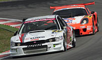 ![]() GT300クラスでは、ポールポジションからスタートしたNo.3 ユニシアジェックスシルビア(井出有治>柳田真孝)が特別ハンディの30kg(予選2位のNo.900が20kg、3位のNo.77が10kg)を背負っていたが、2人のドライバーともにそれものともしない好走を見せ、ラスト10周時点では2番手No.77 クスコスバルインプレッサ(谷川達也>小林且雄)に40秒近い大差を付けて独走。今季からGT300に挑戦しているハセミ・モータースポーツは早くもGTレース初勝利を手にした。