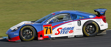 この中で、クスコスバルとJIM RodeoDriveがマシントラブルで脱落。Garaiyaとシグマのマッチレースとなる。Garaiyaの新田はシフトが入りにくくなるトラブルを抱えながらも、このレースがJGTCデビューとなるシグマの片岡の攻めをしのぐ。だが、26周目にシグマがGaraiyaをパス。これを気にGaraiyaピットに駆け込む。この時、Garaiyaは給油に時間が掛かっって遅れて、実質4番手まで落ちる。