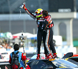 伊藤大輔「前回TAKATA(No.18)が勝っているし、ここはホンダのサーキットということでプレッシャーはありましたが、無事に勝ててホッとしました。今回は、まず予選で一番前に並んでおくというのが最低条件と思っていました。(予選で)優勝がねらえる位置が獲れたと思っていたし、決勝用のセッティングはトムがいいセットを作ってくれて、自信がありました。だから、なるべく前を早く抜いてトムにバトンタッチしようと思ってました。なかなかGT-R(No.22)が抜けなかったんですが、向こうはアンダーステアが出てたのでプッシュしていったら結果的には抜けました。でも、GT-Rと争っているあいだにトムス(No.36)に逃げられてしまいました。なんとかピットに入る前に追いついて、ボクらのタイヤはまだ余裕があったんですけど、ペースの落ちたクルマ(No.36)に引っかかるより(ピットに)早く入ろうという判断を(チームが)したと思います。そこでトムがいいアウトラップをしたのでトムスの前に入れました。GTレースにはインラップ、アウトラップ、そしてピット作業の時間が大事だと再認識して、過去数戦のデータを調べ上げて、ドライバーもピットも短縮するための細かいことを考えてきました。そういう意味ではドライバーだけでなくチーム全体の勝利だと思います」