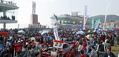 阿蘇の山間にあり、早朝こそは冷え込んだオートポリスだったが、昼前からは暖かい日ざしが降り注ぎ、気温は19度まで上昇。絶好のレース日和となった。路面温度は25度と昨日並となった。午後13時57分予定通りにフォーメーションラップがスタート。昨日、予選基準タイムをクリアできず、予選落ち扱いとなったNo.88 ノマドディアブロJGT-1、No.70 外車の外国屋ダンロップポルシェも出走を許可され、37台が九州初開催となるJGTC公式戦に挑んだ。なお、23日の合同テストでクラッシュしたNo.76 イエローコーンマクラーレンGTRは修復ができず、参戦を取りやめた。
