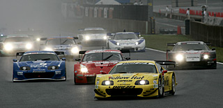 決勝開始は14時。朝のうち激しく降っていた雨はレース前に上がったが路面は濡れており、各チームは直前までタイヤ選択に悩むことに。けっきょく、GT500、GT300両クラスともほぼ全車が浅みぞのウエットタイヤを装着した。ただしNo.19 ウェッズスポーツセリカはスリック装着のギャンブルに出た。スタート直前の気温は22度、路面温度は25度。