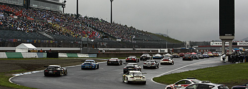 朝のフリー走行でクラッシュしたNo.38 auセルモスープラと、GT300クラスのNo.9 ADVAN K-STUDIUM MTはピットスタート。またフォーメーションラップ開始時にエンジンがかからなかったNo.88 JLOCムルシエRG-1は最後尾からのスタートとなった。