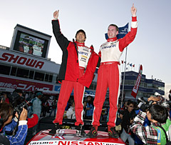 それどころか、後半の追い上げが期待されたNo.6が34周終わりで緊急ピットイン。オーバーヒートでリタイアとなってしまう。これでNo.6のタイトルの可能性は消滅。残されたNo.39もNo.1の直後にはつけるものの最後まで抜くことができず、8位でチェッカー。この結果、7位に入ったNo.1の本山哲/リチャード・ライアン組がドライバー・タイトルを決定した。ライアンにとっては、フォーミュラ・ニッポン全日本選手権タイトルとのWタイトルとなった。チーム・タイトルは、前戦オートポリスでNISMOが確定しており、チューナー・タイトルは、トヨタテクノクラフトが獲得した。