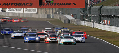 1周のフォーメーションラップの後、ポールポジションのNo.36 WOODONEトムススープラ(土屋武士)が手堅くスタートを決めてトップをキープ。2番手のNo.3 G'ZOX・SSR・ハセミZ(エリック・コマス)を従え1コーナーへ。その後方ではNo.32 EPSON NSX(アンドレ・ロッテラー)がNo.12カルソニックIMPUL Z(ブノワ・トレルイエ)をパス、3番手に上がる。さらにその後ろではNo.22 モチュールピットワークZ(影山正美)、No.18 TAKATA童夢NSX(セバスチャン・フィリップ)、No.8 ARTA NSX(伊藤大輔)の3台が並んだまま1コーナーに飛び込み、行き場を失いイン側の縁石をまたいだNo.18がスピン。後方に混乱が発生する。これにNo.25 ECLIPSE ADVANスープラ(織戸学)、No.62 Vemac R&D DUNLOP 408R(柴原眞介)らも巻き込まれ、5台ともポジションを大きく落とす。1周を終えて帰ってきたトップ3はNo.36、No.3、No.32の順。