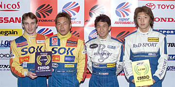 土屋武士「午前中は琢弥さんが2周しただけです。トラブルではなく、雨上がりで路面がホコリっぽかったので午後にタイヤを2セット残したんです。雨さえ降らなければ午後のほうがコンディションがよくなることはわかってましたから。もし雨が降ったらですか? そこは天気予報を信じて(笑)、午後に賭けてました。午後のアタックは、結果からいうとコンマ2、3秒ひっかかって、(1分)22秒5が22秒8になってしまいました。ちょっともったいなかったですね。あれがなければ4〜5番手はあったと思います。このポジションからのスタートですから、優勝をねらいます。鈴鹿ではほかより劣っている状況で3位にいけそうでしたから、その劣っている状況が改善された今回は十分(優勝を)ねらっていけると思います。状況が改善されるのが最終戦になってしまいましたが、1年間めいっぱいやった結果ですからぜんぜん悔いは残りません」