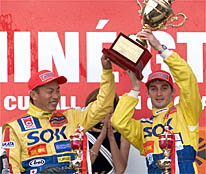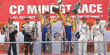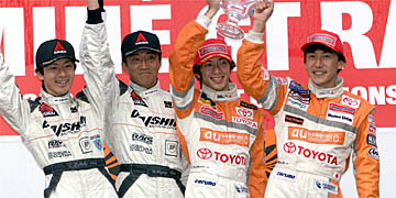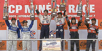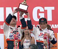 青木孝行「チャンピオンは初めてです。F4でチャンピオンと同ポイントだったんですが、優勝回数の差で負けたことがあったんです。ほんとうにうれしいですね。いいチームに入れてもらいました。ボクだけが速かったわけではないですよ。エンジンも、タイヤも、メカニックも、全員が努力した結果だと思います。そういう努力に応えようと、ボクもせいいっぱいやりました」