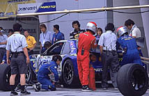 脇阪寿一「1回目はぜんぜん問題なかったんですけど、2回目はアタックに入ったらクルマがコーナーで跳ねてしまって…。たぶんスタビライザーの問題じゃないかと思うんですけどね。2回目の最初は中古タイヤで満タンでしたけど、そのときはボクは乗っていません。ただ満タンでセットをあわせていったので、燃料を抜いたときに跳ねてしまったのかもしれませんね」