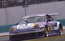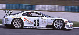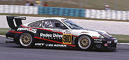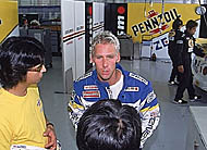 松田秀士「ボクは去年ケガでここのレース走ってないんで、今回が初めてなんですよ。おもしろいコースですね。高速コーナーもあるし、コーナリングしながらブレーキングしなけりゃいけないところもあるし、けっこうむずかしい。チャレンジし甲斐のあるコースですね。テクニックが問われるコースなんで、こういうところでこそ勝負したかったんだけど…。(ポルシェ勢で2分)12秒台が1台もいないってのはねえ。(リストリクターが絞られてきびしいことは)今年の初めからわかっていたこと。ほかの熟成が進んでいないうちは目立たなかったけど、ここへ来て一気に差が開いた感じですね」