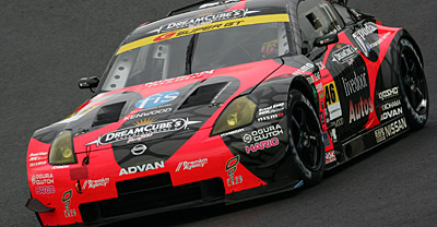 富士スピードウェイで2005 AUTOBACS SUPER GT第6戦「FUJI GT 300km RACE」の予選1回目が、午前10時20分から60分間の予定で行われた。(観衆:20,800人) QUALIFY SESSION 1 曇、気温24度、路面温度28度、ウェット/ドライ 早朝から降っていた雨は上がったが路面はまだ乾ききっていない状態で、ウェット宣言が出されるなかでの走行開始となった。開始時点での気温は24度、路面温度は28度。 再開後、まずタイムアップしたのはNo.10 MACH-GO FERRARI DUNLOP。クラス専有の時間帯には三船剛がアタックしていたが、空力セッティングを変えて番場琢がアタックしたところ大幅にタイムアップ。スーパーラップ圏内に進出してくる。さらにNo.0 EBBRO M-TEC NSX(細川慎弥)、No.5プロμMACH5 B-1 320R TEAM KYUSHU(玉中哲二)、No.13 エンドレス アドバンZ(影山正美)もタイムアップ。さらにNo.46 Dream Cube's ADVAN Zが1分42秒830までタイムアップしてトップを奪ったところでチェッカー。そしてチェッカーフラッグが出た周にNo.2 Privee ZurichアップルRD320Rが6番手に飛び込んだところでセッション終了となった。この結果、GT300クラスのスーパーラップ進出車両はNo.46 Dream Cube's ADVAN Z、No.0 EBBRO M-TEC NSX、No.62 WILLCOM ADVAN VEMAC 350R、No.5プロμMACH5 B-1 320R TEAM KYUSHU、No.13エンドレス アドバンZ、No.2 Privee ZurichアップルRD320R、No.10 MACH-GO FERRARI DUNLOP、No.7雨宮アスパラドリンクRX7、No.11 JIM GAINER FERRARI DUNLOP(田中哲也)、No.30 RECKLESS MR-S(佐々木孝太)の10台となった。 DRIVER INTERVIEWGT500 TOP TIME No.38 ZENTセルモスープラ 立川祐路「うまくタイムが出せたかなと思います。開始ちょっと前まではコースがまだ濡れている状態だったので、最初はウェット(タイヤ)でコンディションだけ確認しました。それでスリックに履き替えて出ていったんですが、思ったよりも(路面が)早く乾いたんで、完全ドライで走れました。それがよかったと思います。クルマは仕上がっているので、ドライだったら決勝でもよさそうです。スーパーラップはドライでやりたいですね。雨でのワンラップアタックはあんまりよくないでしょ。予選最後に赤旗中断になったときは、僕は乗ってなかったし、あのときにニュータイヤを履いてもタイムアップはないだろうと思ってたんで心配はありませんでした。でも今年の予選はスーパーラップしだいだから、逆にプレッシャーのかかる位置になってしまったかな(笑)」 GT300 TOP TIME No.46 Dream Cube's ADVAN Z 星野一樹「混走で雨が降るといけないから、GT300(クラス専有)でとりあえずタイムを出さなきゃいけないと思ってました。それでトップを取ったんですが、混走でも晴れている状態だったんで、じゃ最後の最後に(アタックに)出ようと思ってました。(アタックに出る前は)すでにコースにいて、誰かがタイムを更新したら無線を入れてもらうことになってて、連絡をもらってからクリアを探してアタックに入りました。運よくクリアも1周だけ見つかって、計測2周目にタイムが出るタイヤだったので、いい感じでゆっくりと1周温めてタイムを出すことができました。ホント、チーム力に助けられてますね。(ウエイトハンデを)50kgも積んでいると思えないほど、いいクルマを作ってくれてます」