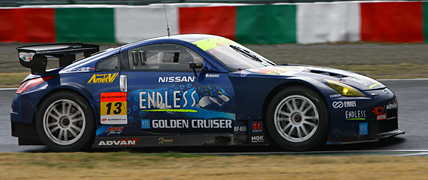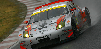 14時35分、GT300クラスのスーパーラップ開始。No.88 アクティオムルシェRG-1(マルコ・アピチェラ)からアタックに入る。シケインで姿勢を乱すなど多少のロスもあったが、2分21秒277というタイムをマーク。その後のアタッカーのターゲットとなる。次に出走したのはNo.46 吉兆宝山DIREZZA Zの佐々木孝太。最初のセクターからNo.88のタイムを大きく上回り、たたき出したのは2分20秒858。暫定トップのドライバーが座る“王様の椅子”をアピチェラから奪い取る。つづくNo.11 JIM CENTER FERRARI DUNLOP(田中哲也)はチーム内のコミュニケーションにミスがあったのか、ウォームアップを1周多く走ってしまい、タイムアタックのチャンスを逃す。No.101 TOY STORY Racing MR-S(新田守男)はスプーンでコースアウト、復帰するものの大きくタイムロスしてしまう。つづくNo.87 トライクムルシェRG-1(山西康司)は僚友、No.88を上回る2分21秒186をマークするもののNo.46には届かず、2番手。この間、雨は間断なく降り続き、路面状況は徐々に悪化。No.62 WILLCOM ADVAN VEMAC408R(柴原眞一)、No.110 TOTALBENEFIT GREENTEC BOXSTER(菅一乗)はウォームアップラップでコースアウトし、アタックに入れないまま終わってしまう。残る3台、No.7雨宮アスパラドリンクRX7(山野哲也)、No.2 Privee Zurich・アップル・紫電(加藤寛規)、No.13 エンドレスアドバンCCI Z(影山正美)も濡れた路面にタイムアップをはばまれ、このままNo.46のクラスポール獲得が決まった。2〜3番手にはNo.87、No.88、2台のランボルギーニ・ムルシェラゴがつづいた。