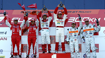 - 非常に幸せな気分です。僕にとっても日本での優勝というのは非常に久しぶりで、最高ですね。ランボルギーニにとっても、これは日本だけでなく、世界的にも初優勝になると思いますので、僕らにとってもイタリアにとっても最高な日ではないかと思います。ランボルギーニの歴史に残る日ではないかと思います。それだけに幸せな気分を感じています。昨年末にはクルマに手応えを感じていました。それは、サスペンション、インジェクションを変えたことなどです。また、タイヤとの相性も良くなってきていました