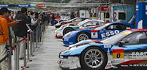決勝日ピットウォーク中/レーシングコース□SUPER GTに参戦するチームや有名パーツメーカーが開発したチューニングカーがSUPER GTドライバーの手によりサーキットを激走する。走行は決勝日のピットウォーク時。