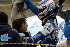 - ドライバー交代のときにスターターが回らなくてちょっと時間がかかってしまったんですけど、なんとか回ってくれて…。で、出たらもうボクスターが後ろに来ていた。裏ストレートの後のヘアピンまでがんばればタイヤも温まってなんとかなると思ったんですが、裏ストレートで並ばれて…。なんとかブロックしてからはクルマの調子もずっとよくて、ペースを落とすことなくずっと最後まで走りきれました。ホント何のバトルもなかったんで、淡々と練習中のように走りました。ディレクシブとしては、去年、海外のGP2組がみんな勝ったりして、今年はボクらもなんとかしたいと思っていたんです。でも、第2戦で勝てるとは思っていませんでしたし、ホントによかったという感じです