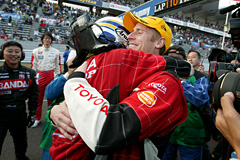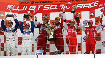 - スタート前は緊張していました。前回の岡山ではいいスタートが切れなくて、トラブルがあって思うように走れなかったからです。今回はスタートもうまくいって、スタート後すぐに(No.1 ZENTセルモSCの)立川選手がピットに入って、私たちがトップとなったので、それからはその位置を守ることだけを第一に考えました。私が注意したのはGT300を抜くときにイエローフラッグを見落として、ムダなペナルティをもらわないようにしたことです。そういった細かいことに注意していました。けっこういいタイムも出せて、ボクのスティントではトップをキープすることができました。ダンロップには大感謝です。表彰台のトップに立てたことで、加えてトヨタ、チームにもお礼を言いたいです。前に勝ったのは相当昔なので、表彰台に立ったときはちょっと不思議な気持ちでしたね