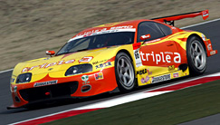 おだやかな日射しの中、午前9時30分から2時間の予定で最初のセッションが開始。気温11度、路面温度13度のコンディションだ。黒いカーボンのむき出し状態のエアロパーツが装着されたマシンがテストらしさを感じさせる。No.350 日産のテストカーは通常のレースウイークではできないテストを行うために走らせているものだという。トヨタのLEXUS SC430の各車にも、高速コースの富士での効果を求めた黒いエアロパーツが装着されていた。 セッション半ばでトップタイムの1分35秒473をマークしていたのはNo.66 triple aサードスープラGT(アンドレ・クート/平中克幸組)で、残り30分ほどでさらに35秒414まで更新、セッショントップのタイムとした。終了時点では気温17度/路温28度まで上昇した。