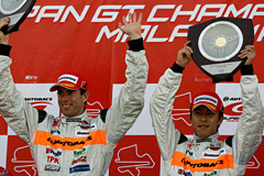 - 優勝できて最高にいい気分です。このレースはとにかく優勝したいという気持ちが強かったです。でも、タフなレースでもありました。昨年もトップを走りながら最終的に優勝できず、僕もダイスケもチームもとても悔しい思いをしました。今回のレースでは最初の10ラップ、15ラップでリードを広げるようがんばって、あとは安定して走るつもりでした。ただその間に問題が出て、まず無線が使えなくなって、チームとやりとりができなくなった。そしてクールスーツが壊れてしまった。チームとのコミニュケーションはボードだけでやっていたんですが、やはりうまく伝わらなくて、それで予定より早い段階でピットインしてしまっったんです。そのためダイスケが長い周回を走ることになってしまいました。でも彼はとても素晴らしいレースをしてくれて、とても感謝している。後ろからのフェアレディZのプレッシャーもきつかったし、昨年のこのレースでいろいろあったし…。今年は優勝できてホントによかったです。今後のシリーズのためにもここで勝てたことは最高に良かった。ホンダやブリヂストンにも感謝します