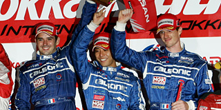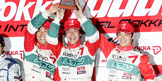 - ゴール後ですか? 泣いてませんよ、水を被っただけですよ(笑)。GT300で勝ったときもそうだったんですが、レース後に監督と握手して……。うれしかったですね……(ちょっと言葉に詰まる)。へへっ。今後のシリーズは、まだ何も考えてないんですけど、ウエイトも大きくなるんで、残り3戦ベストを尽くしてポイント取るだけ。最終戦の富士、チャンピオンをねらっていけるような位置でいたいですね