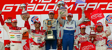 - 今はとても幸せな気分です。SUPER GTで勝つのは非常に難しいことで、何度もあることではないので、本当に最高です。スタートして、最初は簡単に10秒くらいのリードを作れて、これならもっと差が広がるかなと思ったのです。でも、ヘアピンでボクがミスをしてしまった。ブレーキペダルに足があたって、ブレーキを戻すタイミングをミスして、コースアウトしてしまったんです。これで6秒から7秒ロスしてしまって、それが悔しかったですね。それからもう一度、2位とのリードを広げようとしました。アンドレ(No.36のロッテラー)が2番手に上がっていたのは知っていて、でもギャップをキープすれば勝てるという自信はありました。(細川に交代後は)細川君は速いし、安心していました。今朝(のフリー走行)も速かったし、安定していましたから。ただ、GTでは何が起こるかわからないので、残り20周くらいからはドキドキもしていました。