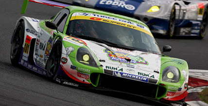 これで実質トップスタートとなったのはNo.19 ウェッズスポーツセリカ(松田晃司)だが、次の直線で、最高速に勝るNo.9 NOMAD ADVAN LeyJun MT(OSAMU)がすぐに逆転。また、10番手スタートだったNo.26 カーチスTOMOタイサンGT3(山路慎一)はオープニングラップで6位、4周目に4位、9周目に3位、10周目にはついに2位と、驚異的なペースでポジションアップを果たす。No.26はその後トップとの差もじわじわと詰め、25周を過ぎるころには手の届くところまで迫ってくる。ところが、28周目、No.9がGT500クラスのクルマと接触。No.26はかろうじてこれを避けるが、この間にNo.19と、その後方にいたNo.62 WILLCOM ADVAN VEMAC408R(黒澤治樹)の先行を許すことに。だが、No.19とNo.62はその周にピットイン。これでトップはNo.26が奪い返すが、No.9はサスペンションを破損しており、そのままリタイアとなってしまった。