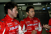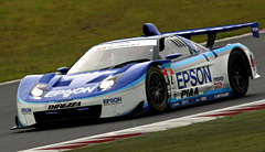 午前9時から2時間の予定で最初のセッションが開始。気温16度、路面温度19度と肌寒いほどのコンディションとなる。セッション開始直前に雨がコースを濡らすが、小雨が降ったり止んだりという程度で、なんとかドライ路面となっていた。開始40分ほどで雨が本降りとなり、完全なウェットコンディションとなる。 セッション半ばの10時の時点ではNo.23 XANAVI NISMO Z(本山哲/松田次生組)が1分34秒311のトップタイムをマークしていた。2番手はNo.32 EPSON NSX(R.デュバル/武藤英紀組)の34秒624、3番手に前戦もてぎの勝者No.100 RAYBIRG NSX(S.フィリップ/細川慎弥組)の34秒880、4番手にNo.1 ZENTセルモSC(立川祐路/高木虎之介組)の35秒106となっていた。 富士で抜群の速さを誇るNo.1の立川は「出だしに中古タイヤで5周くらい走っただけで、タイヤテストをこれからやろうと思った時に降ってきた。タイム的には気にしてないし、(クルマの)パフォーマンスは確認できた。相手も速くなってきてるけれど、ウチもコーナーが速くなってる。前回の富士のリベンジ(ポール・スタートだったが早々にリタイア)は最終決戦の富士ですね」と語った。10時40分過ぎには雨が強くなり、このセッションでのこれ以上のタイムアップはなかった。 GT300クラスは、No.62 WILLCOM ADVAN VEMAC 408R(柴原眞介/黒澤治樹組)が1分43秒148のトップタイムをマーク。続いてNo.96 EBBRO BTEC MAZIORA 350R(黒澤琢弥/黒澤翼組)の43秒737、No.777 梁山泊 apr MR-S(田中実/大嶋和也/新田守男/高木真一)の43秒858となっていた。その後No.777 MR-Sが43秒753までアップ。だがコースコンディションはウェットとなり、結局No.62 VEMACのトップタイムとなった。